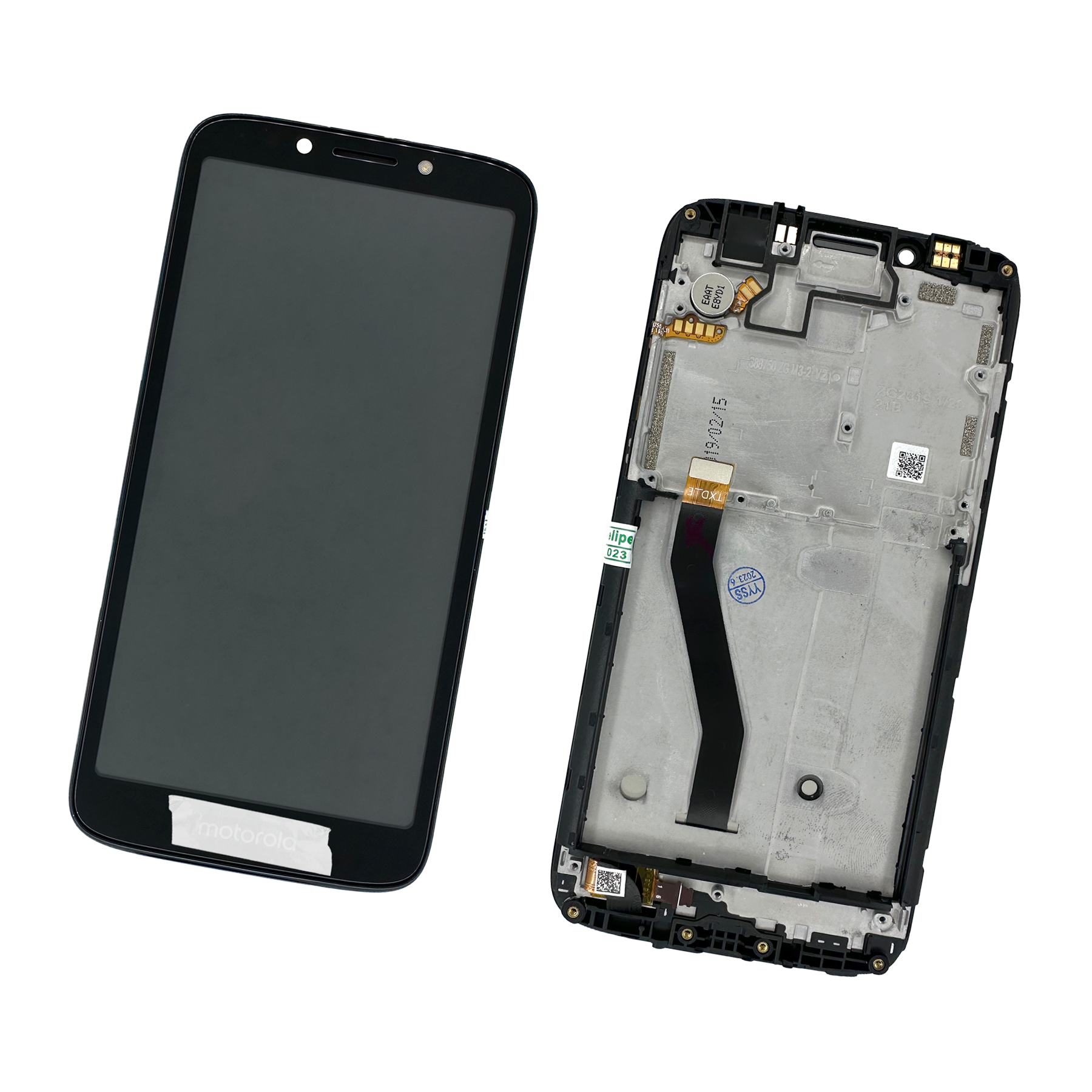 Pantalla de repuesto para Motorola E5 Play (modelo XT1920) en elegante color negro, con marco integrado. Este repuesto incluye el display LCD y el digitalizador táctil, ofreciendo una excelente calidad de imagen gracias a su tecnología IPS LCD de 5.2” con resolución HD de 1280 × 720 píxeles. Garantiza colores nítidos, buen brillo y una respuesta táctil precisa, devolviéndole a tu dispositivo la funcionalidad y apariencia original.