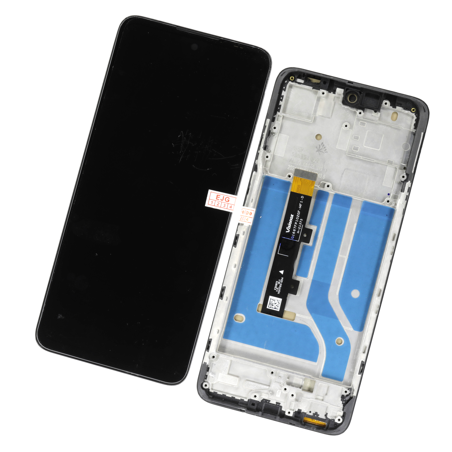 Pantalla de repuesto para Motorola Edge 20 Lite en color negro, con marco incluido para facilitar la instalación. Este repuesto incorpora el display y el digitalizador táctil en un solo módulo, asegurando una colocación más sencilla, un ajuste perfecto y un acabado profesional. Su tecnología OLED de 6.7” con resolución FHD+ (1080 × 2400 píxeles) ofrece colores vivos, gran brillo, negros profundos y una respuesta táctil precisa, devolviéndole a tu equipo el rendimiento y la apariencia original.